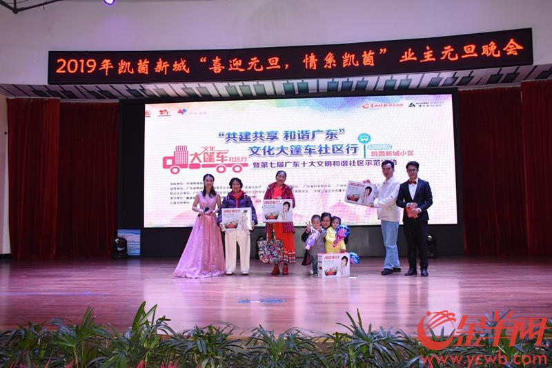 文/图金羊网记者张豪报道:文化大篷车社区行继续前行。上周文化大篷车停靠在广州番禺东环社区、增城新塘镇汇美体育花园、中山市凯茵新城、佛山市颐澳湾花园。本周文化大篷车之行恰逢元旦假日,不少社区开展庆祝元旦活动,营造社区互敬互爱的氛围,丰富社区文化生活。